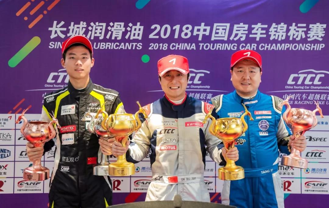 紧接着,中国杯的冲刺赛在午后展开。杆位出发的吴晓峰在起步初始守住了位置,之后开始顺利领跑。但在他身后不远的陈凯洲和鲁子房却没这么走运了,他们两人接连遭受了后方对手的凶猛攻击,几次化险为夷后,最终还是因赛车被撞发生故障而返回维修区。虽然在紧急维修后,陈凯洲再次将赛车驶回赛道,但只能排在最后一名。而在中游起跑的杨曦则默默爬升了好几个位置,趁着各竞争对手混战之际,有惊无险的上到了第三,并在最后两圈遭受后方对手进攻时稳稳守住了位置。最终,吴晓峰迎来了自己个人CTCC生涯的首次pole to win,捧起属于自己的首个冠军奖杯,杨曦也带回了季军好成绩。